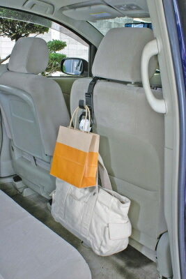 ●ヘッドレストステーに引っ掛けるだけで簡単に取り付けできます。